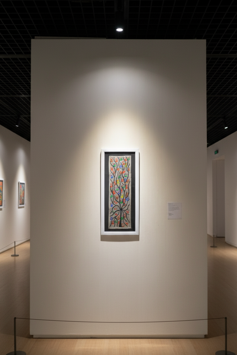 Each stroke is meticulously hand-painted using natural and acrylic colors on high-quality handmade paper, beautifully framed to enhance your living space, office, or art collection.