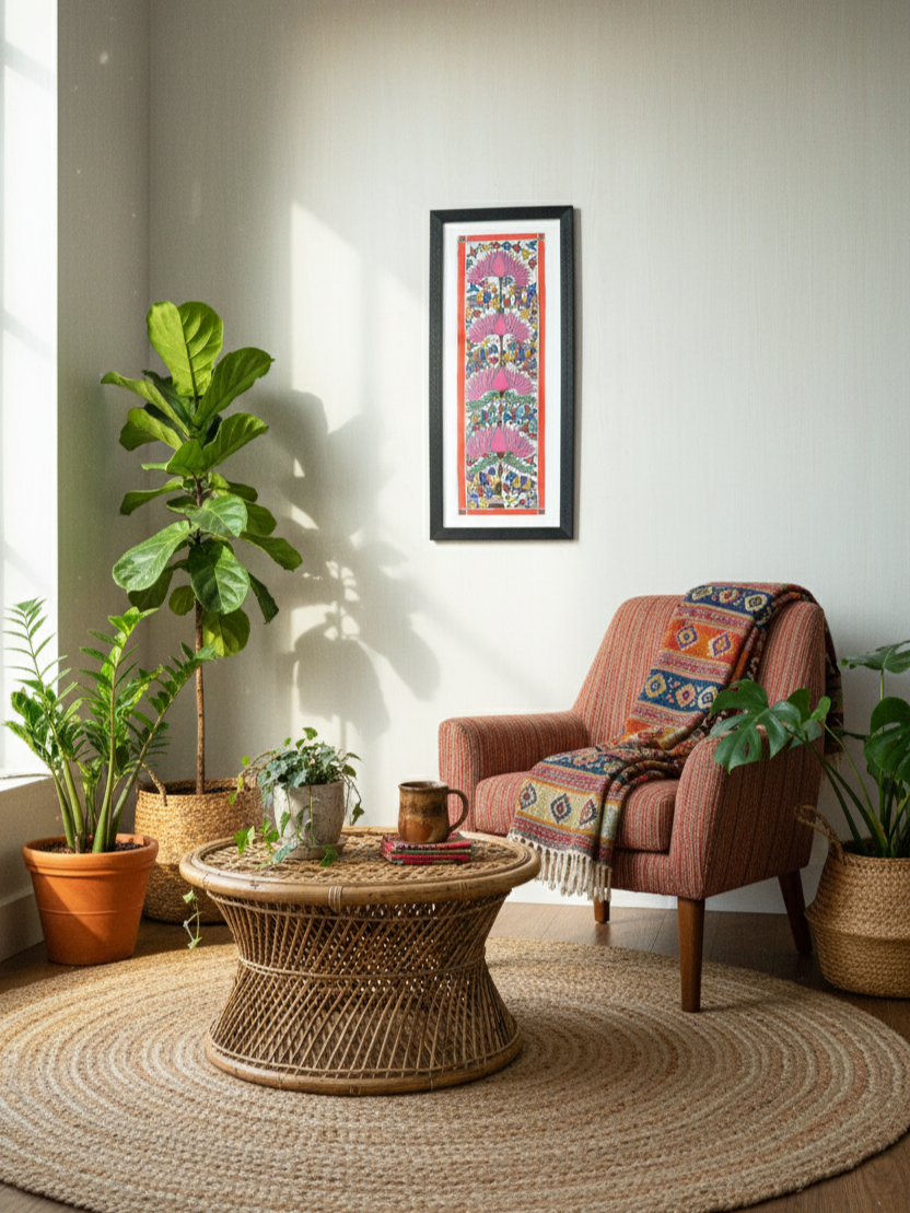 Bring the timeless beauty of Indian folk art into your home with this exquisite Handmade Madhubani Painting from Suchitra Hastkala. This artwork showcases vibrant birds perched on a tree blooming with lotuses, symbolizing harmony, prosperity, and life. Each intricate pattern is hand-drawn using natural colors and fine detailing — a hallmark of the Mithila art tradition from Bihar, India.