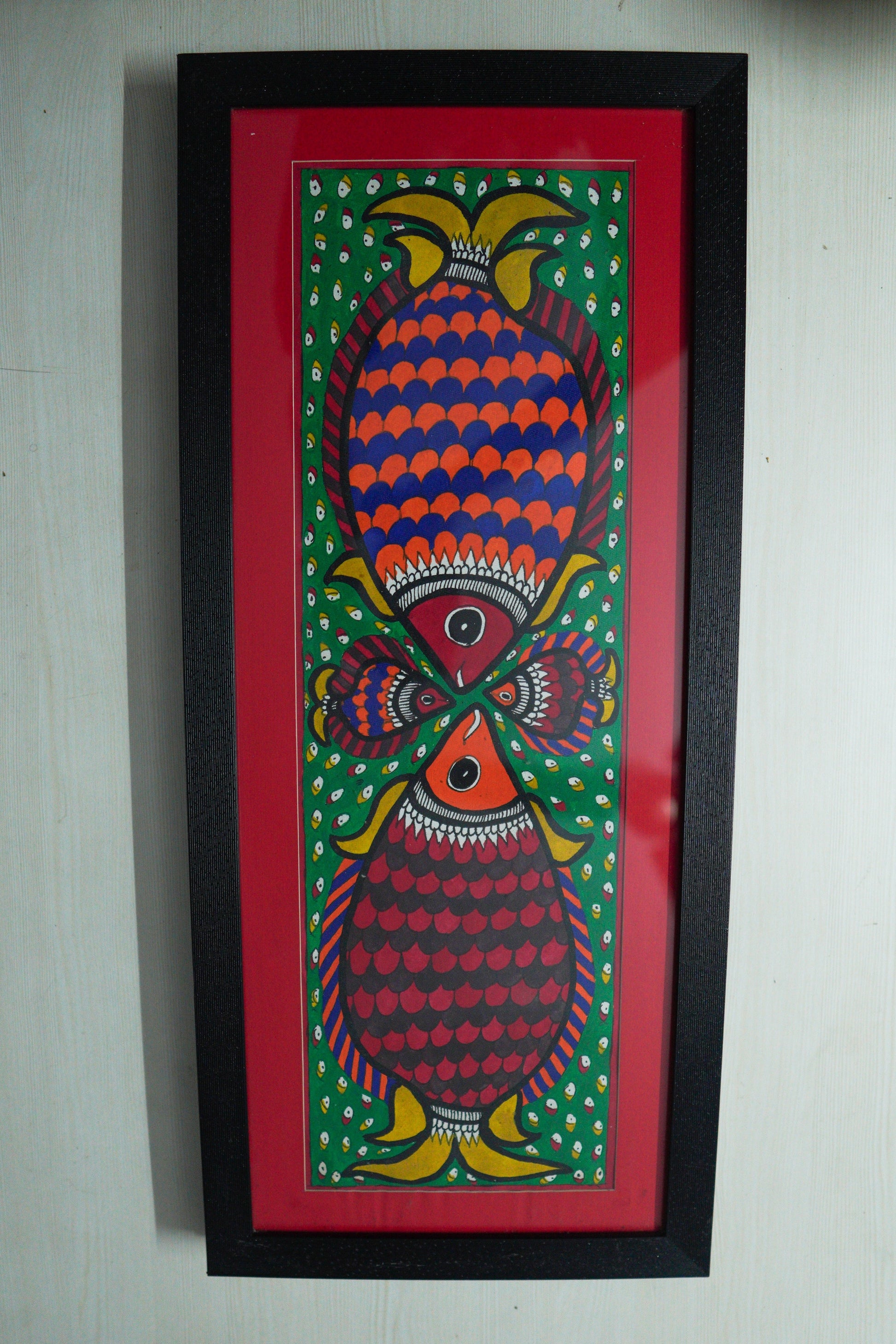 Handpainted Madhubani Fish Art – Traditional Mithila Painting on Paper | Framed Wall Décor by Suchitra Hastkala