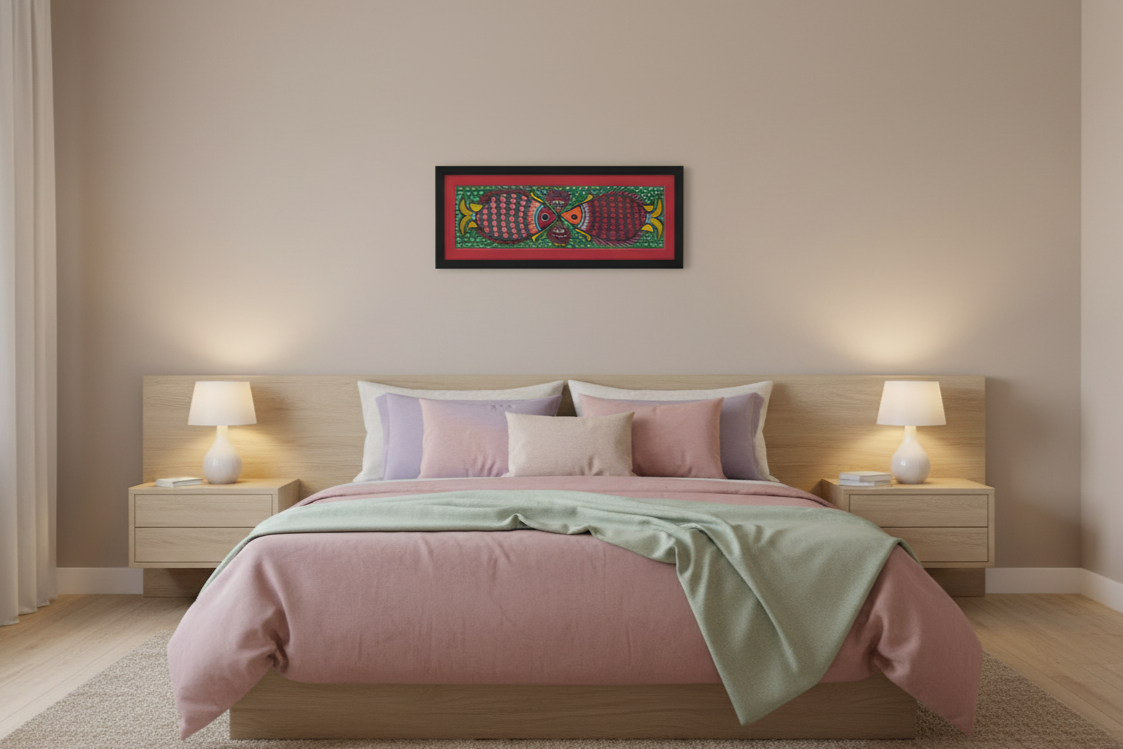 Bring home the charm of Indian folk traditions with this exquisite Madhubani Fish Painting, handcrafted by skilled artisans of Mithila. Each stroke reflects vibrant colors, intricate detailing, and deep symbolism — the fish representing prosperity, fertility, and harmony in Madhubani art.